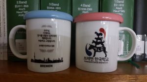 브레멘 한국학교 설립자이신 이광택 교수님께 선물해드린 머그컵이다. 교수님께서 책장에 잘 올려놨다고 하시며 사진을 보내셨다. 사용하시다가 깨지면 또 선물해드릴 수 있는데..